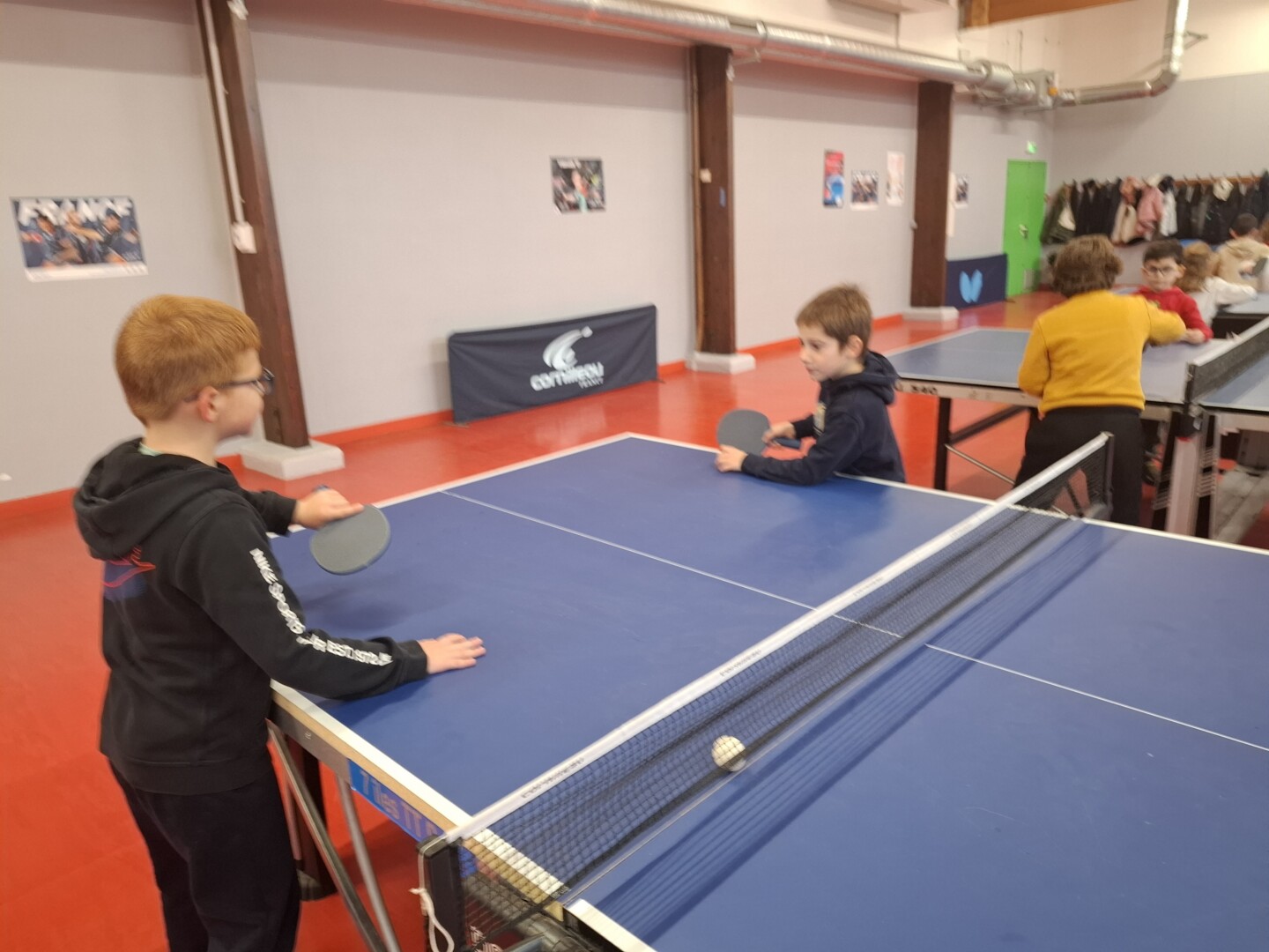 Tous les lundis après-midi durant 7 séances, les CP-CE1 découvrent le tennis de table.